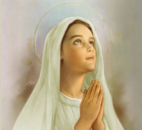 Nace María. Nace una niña santa. Nada se nota en ella hasta que crece y comienza a hablar; a expresar sus sentimientos, a manifestar su vida interior. A través de sus palabras se conoce el espíritu que la anima. Se dan cuenta sus padres: esta niña es una criatura excepcional. Se dan cuenta sus compañeras, que se sienten atraídas por el candor de la niña y, a veces, sienten ante ella respeto reverencial. Sus padres no saben si alegrarse o entristecerse. Para conocer lo sobrenatural hace falta tiempo y distancia. La niña santa no imita los defectos de los mayores y obra según sus convicciones. Cuando nació Juan Bautista, la gente se preguntaba: “qué va a ser este niño?” De María se preguntarían lo mismo. Ella comprende que, aunque quisiera hablar de lo mucho que lleva dentro, debe callar.