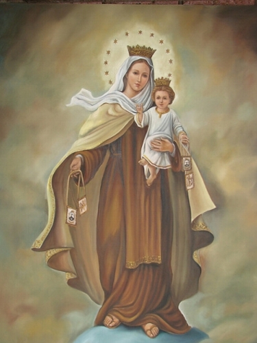 Luego de la aprobación de la regla en 1226 por el Papa Honorio III, los Carmelitas pasan a Occidente. Algunos los recibieron con alegría, pero otros no, comenzando una persecución contra ellos. El general de la Orden, San Simón Stock (1165-1265) oraba sin cesar a la Santísima Virgen para que viniera en auxilio de su Orden. Fervorosamente decía estas palabras: “Flor del Carmelo, vid florida, esplendor del cielo, Virgen fecunda y singular, oh Madre dulce, de varón no conocida, a los carmelitas da privilegios, estrella del mar.” Entonces se presentó la Bienaventurada Virgen acompañada de una multitud de ángeles, llevando en sus manos el Escapulario de la Orden y le dirigió estas palabras:”Este será privilegio para ti y todos los carmelitas, quien muriere con él no padecerá el fuego eterno, es decir, el que con él muriere se salvará.” Desde ese momento comienza María a obrar prodigios por medio del Santo Escapulario y a propagarse entre el pueblo cristiano.